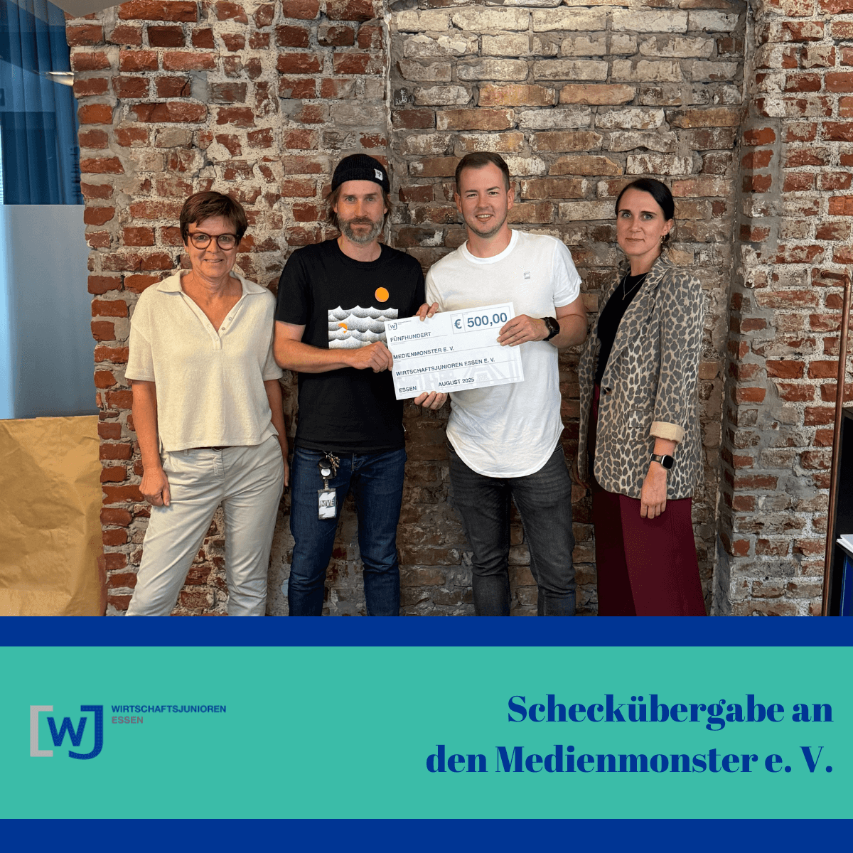 Gestern haben wir den Medienmonstern e. V. in Essen offiziell einen Scheck überreicht. Als Wirtschaftsjunioren Essen unterstützen wir den Verein und sein Projekt sehr gerne – denn Medienkompetenz ist ein entscheidender Schlüssel für die Zukunft. Gemeinsam mit den Medienmonstern möchten […]