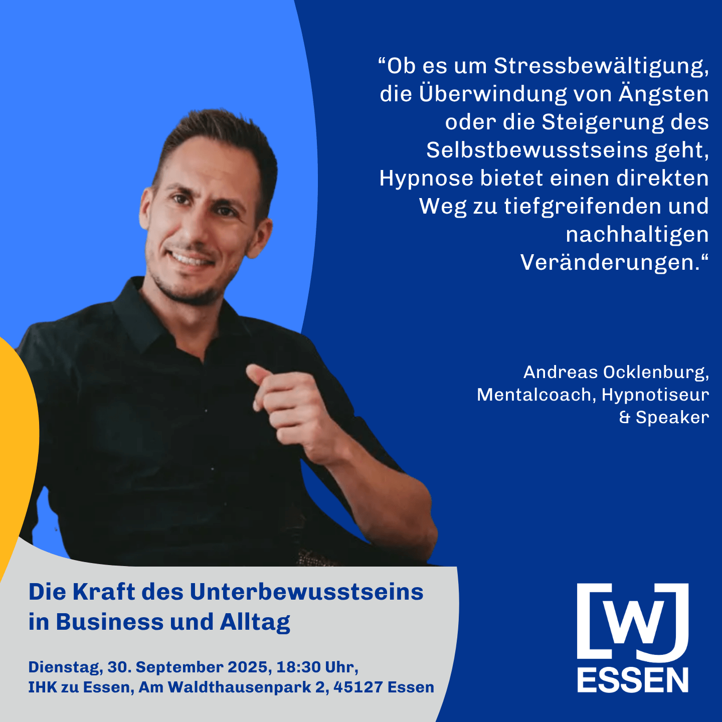 Unlock Your Mind – Mit Hypnose zu mehr Klarheit & Fokus! Wusstest du, dass über 90 % deiner Entscheidungen unbewusst getroffen werden? Genau hier setzt unser Highlight Ende September an: Die Kraft des Unterbewusstseins in Business und Alltag Dienstag, 30. […]