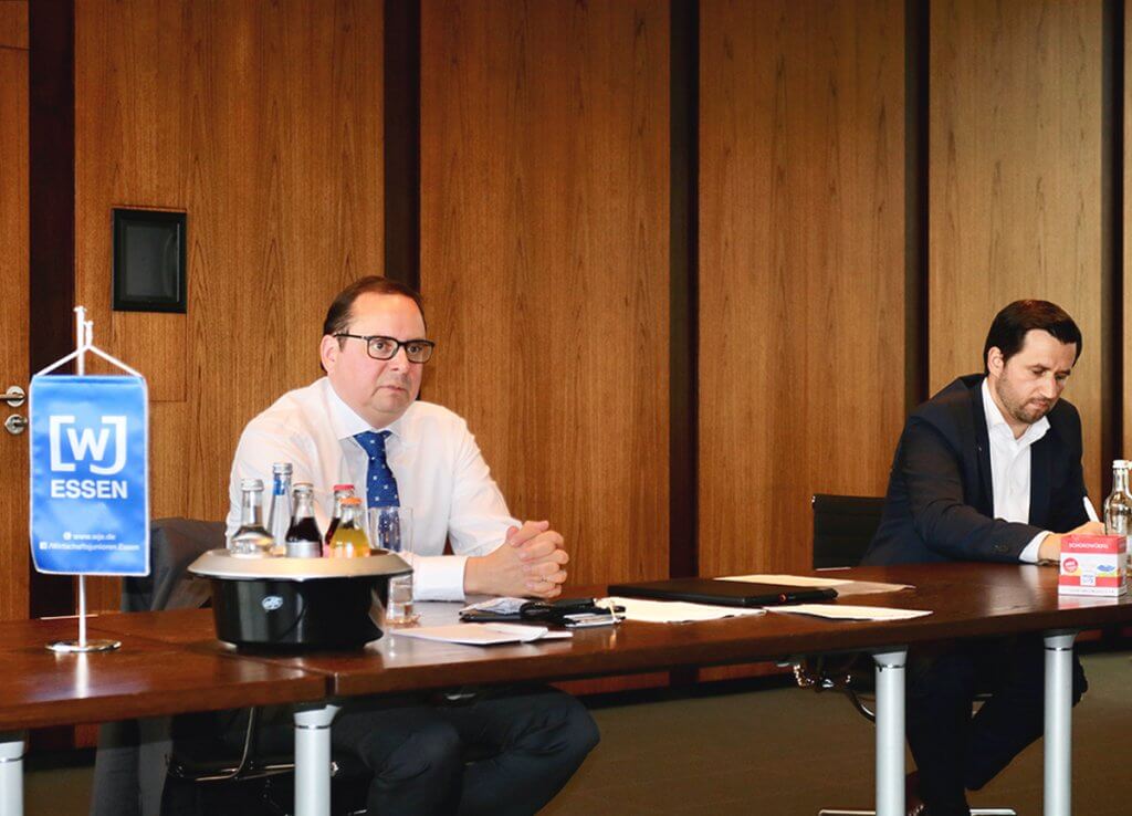 Bei diesem Gespräch, an dem neben lokalen Vereinsmitgliedern auch Junioren der Nachbarkreise und des Landesvorstands teilnahmen, bot sich den Teilnehmern die Möglichkeit, Herrn Kufen zu seinen einschneidenden Amtshandlungen zu befragen und tiefgehende Einblicke in seine bisherigen Schwerpunktthemen zu erhalten. Hierbei widmeten sich die Gesprächsteilnehmer neben den Auswirkungen der aktuellen Corona-Krise vor allem auch den Themen der Digitalisierung, Bildung (Schulen, Kitas), Gewerbeförderung (Flächen, Steuern) und Infrastruktur (Lückenschließung der A 52) sowie der aktuellen Haushaltspolitik Essens.