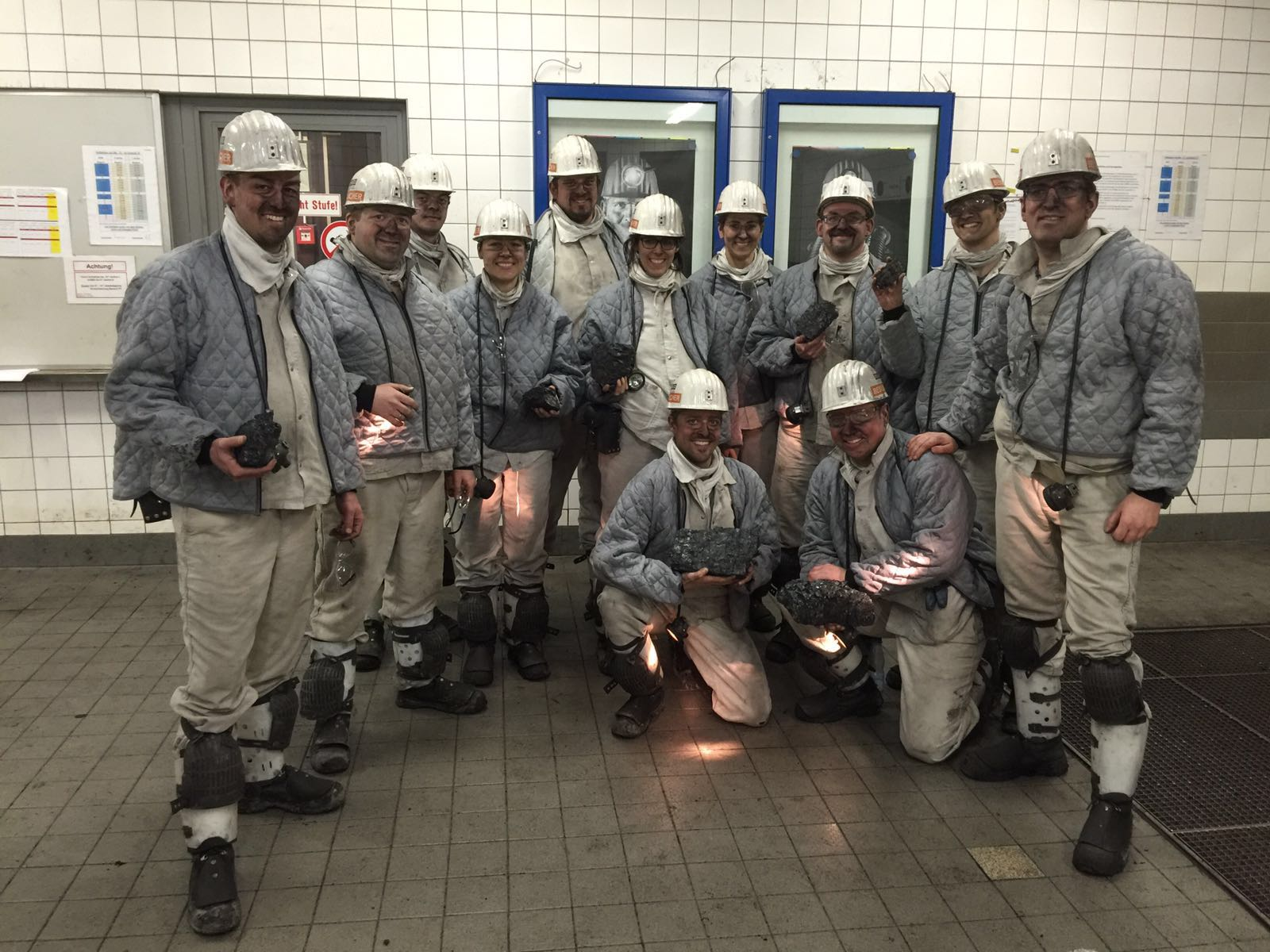 Begeistert und fröhlich sind diese Woche 12 Wirtschaftsjunioren aus Essen in das Bergwerk Prosper-Haniel eingefahren. Begleitet wurden sie vom Bergmann Uwe, der mit seiner direkten Art ihnen humorvoll das 1X1 des Steinkohlenbergbaus erklärt hat. Frei nach dem Motto “Wer die Kohle möchte, muss hart malochen!” scheuten sie weder Schmutz noch Staub, um an das begehrte schwarze Gold zu gelangen. Abschließend wurden bei einem stärkenden Eintopf die letzten verbliebenen Fragen zum Steinkohlenbergbau geklärt.
